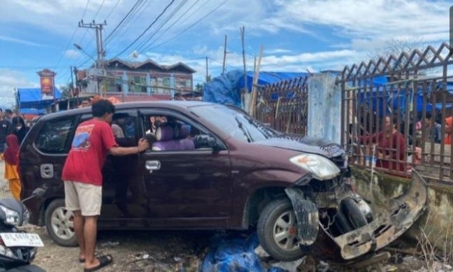 KONAWE – pantau24jam.net. Hendak silaturahmi ke rumah kerabat, Mobil Avanza yang ditumpangi 8 orang, mengalami kecelakaan hingga menghantam satu mobil dan dua motor yang sedang terparkir.