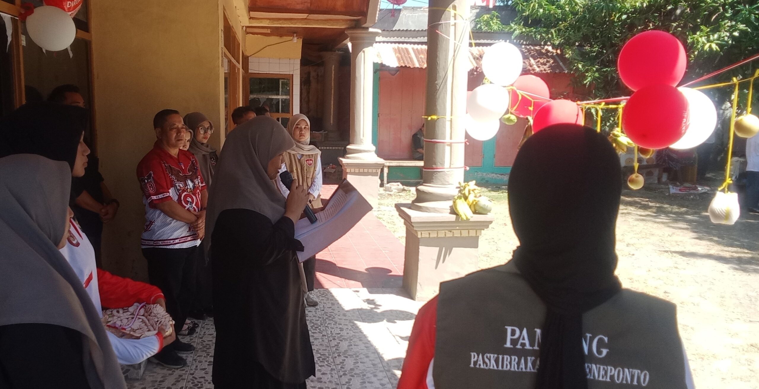 “Dangan mengucapkan bismillahi rahmanirrahim hari ini resmi Paskibraka Jeneponto di Karantina di Desa Bahagia”, ujar Syarbini Mattewakkang saat menggunting pita tanda penggunaan Penginapan Putri Solo sebagai pusat Karantina Paskribraka Jeneponto. Sabtu, 3/8/2025 sekira 10.00 Wita.