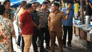 Disela Pj. Bupati bersama Kapolres dan Dandim 1425 berinteraksi dengan pedagang. Keduanya silih berganti bertanya kepada pedagang soal ketersediaan dan harga bahan pokok di bulan suci Ramadhan.