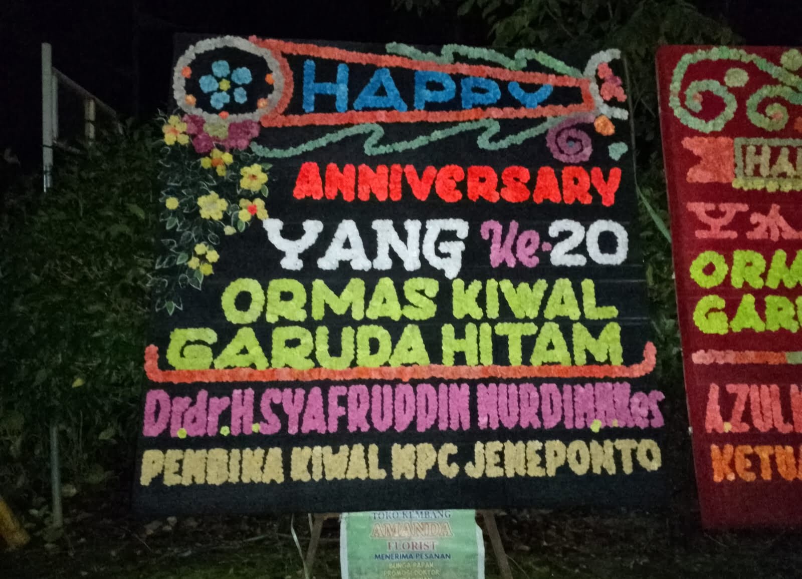 Dr.dr.H.M.Syafruddin Nurdin M.Kes juga mengirim karangan bunga Anniversary Ormas KIWAL Garuda Hitam di puncak acara dipusatkan di Pantai Akkarena Jalan Metro Tanjung Bunga Kota Makassar.