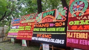 Karangan bunga berukuran sekitar 3 meter x 2 meter dari Dr.dr.H.M.Syafruddin Nurdin M.Kes diletakkan di depan pintu masuk Pantai Akkarena Kota Makassar berdampingan dengan karangan bunga Ketua MPC Jeneponto sejak 13-14 Januari 2024.