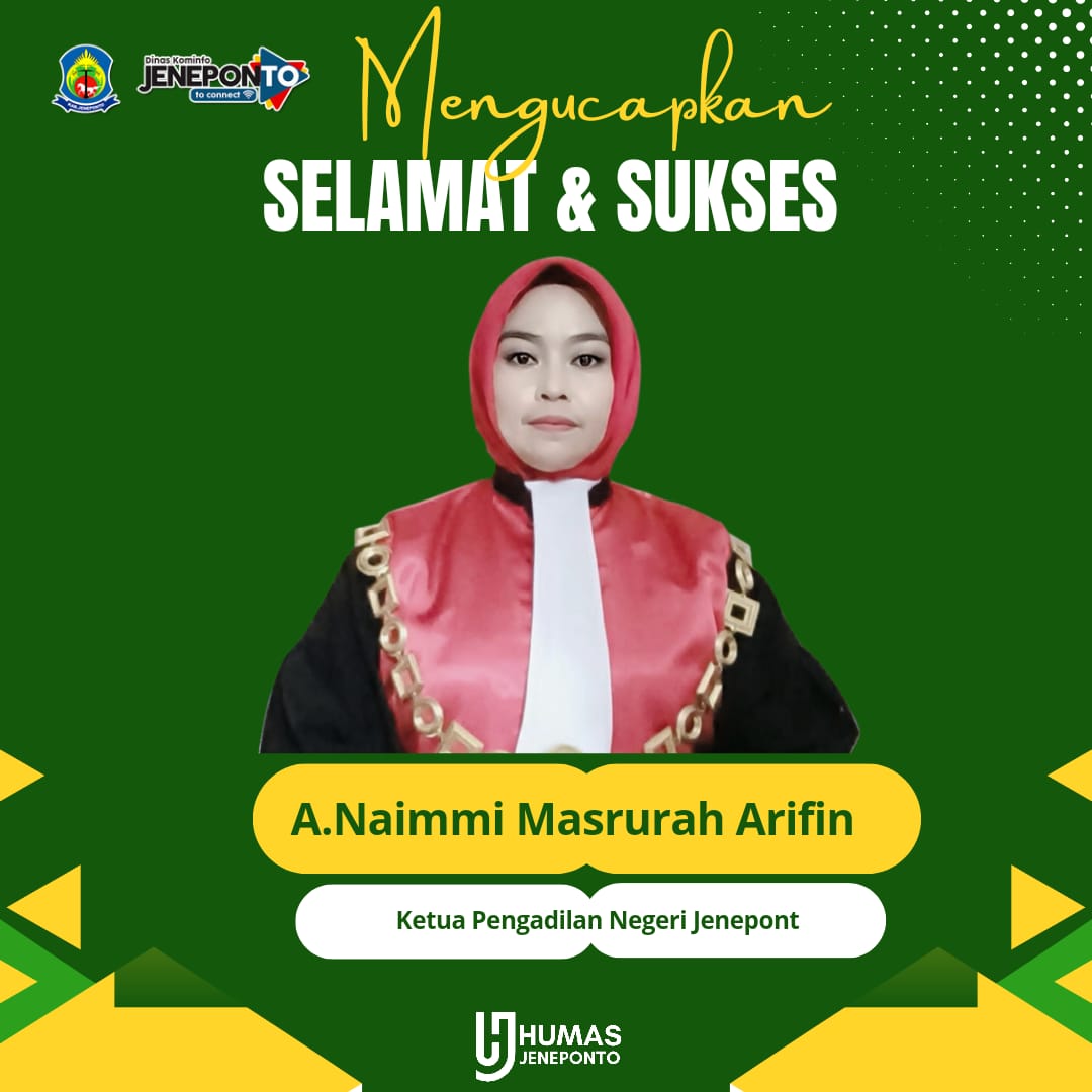 Ibu Andi Naimmi menggantikan Ibu Endah Sri Andriyati, S.H., M.H., sebagai Ketua Pengadilan Negeri Jeneponto. Dengan kepercayaan dan amanah baru ini, beliau diharapkan mampu memperkuat pelayanan hukum di wilayah Jeneponto.