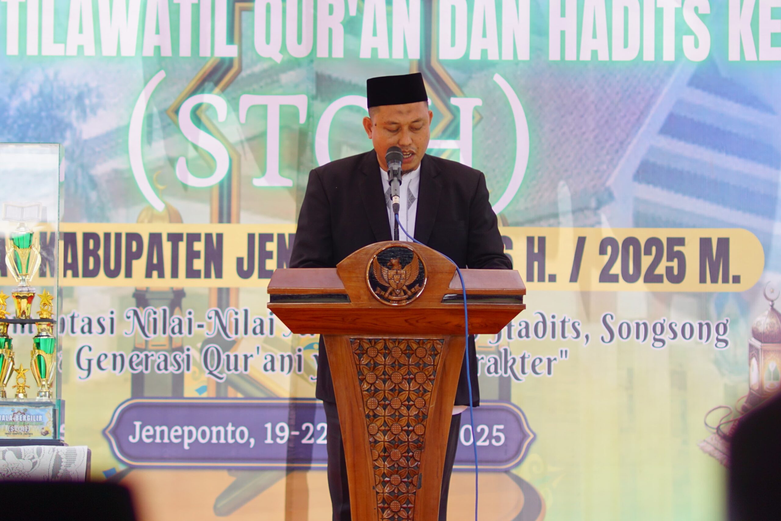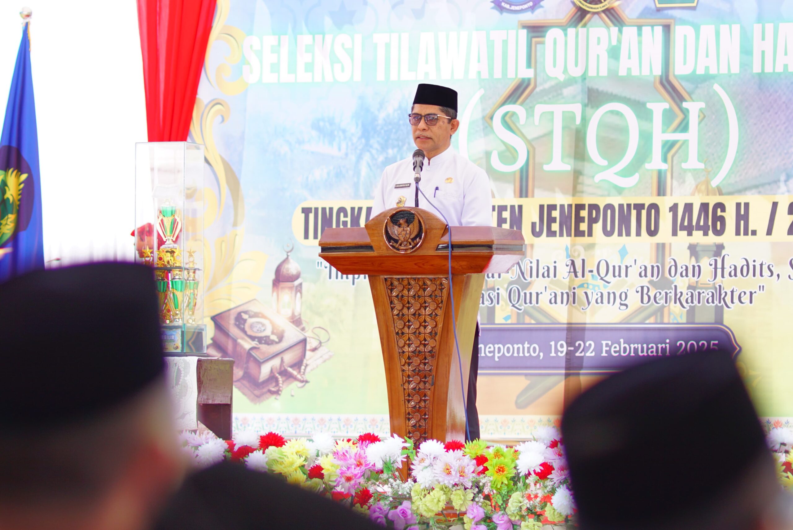 Sekda Kabupaten Jeneponto dalam sambutannya menegaskan bahwa STQH bukan sekadar ajang kompetisi, tetapi juga merupakan wahana pembentukan karakter generasi muda yang berlandaskan nilai-nilai Al-Qur’an dan Hadits.