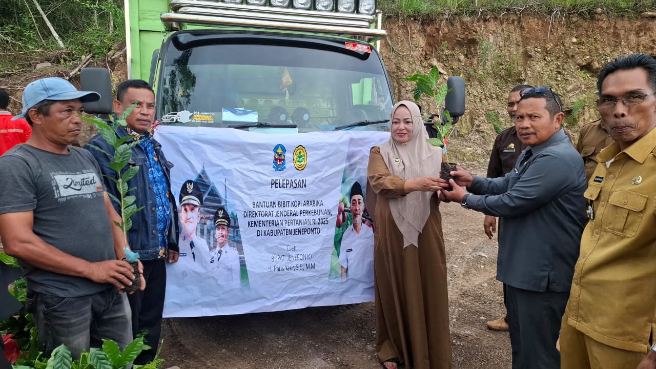 JENEPONTO – pantau24jam.net. Pemerintah Kabupaten Jeneponto menggelar kegiatan pelepasan bantuan bibit kopi arabika dari Direktorat Jenderal Perkebunan Kementerian Pertanian RI Tahun 2025, yang dilaksanakan di Kabupaten Jeneponto.