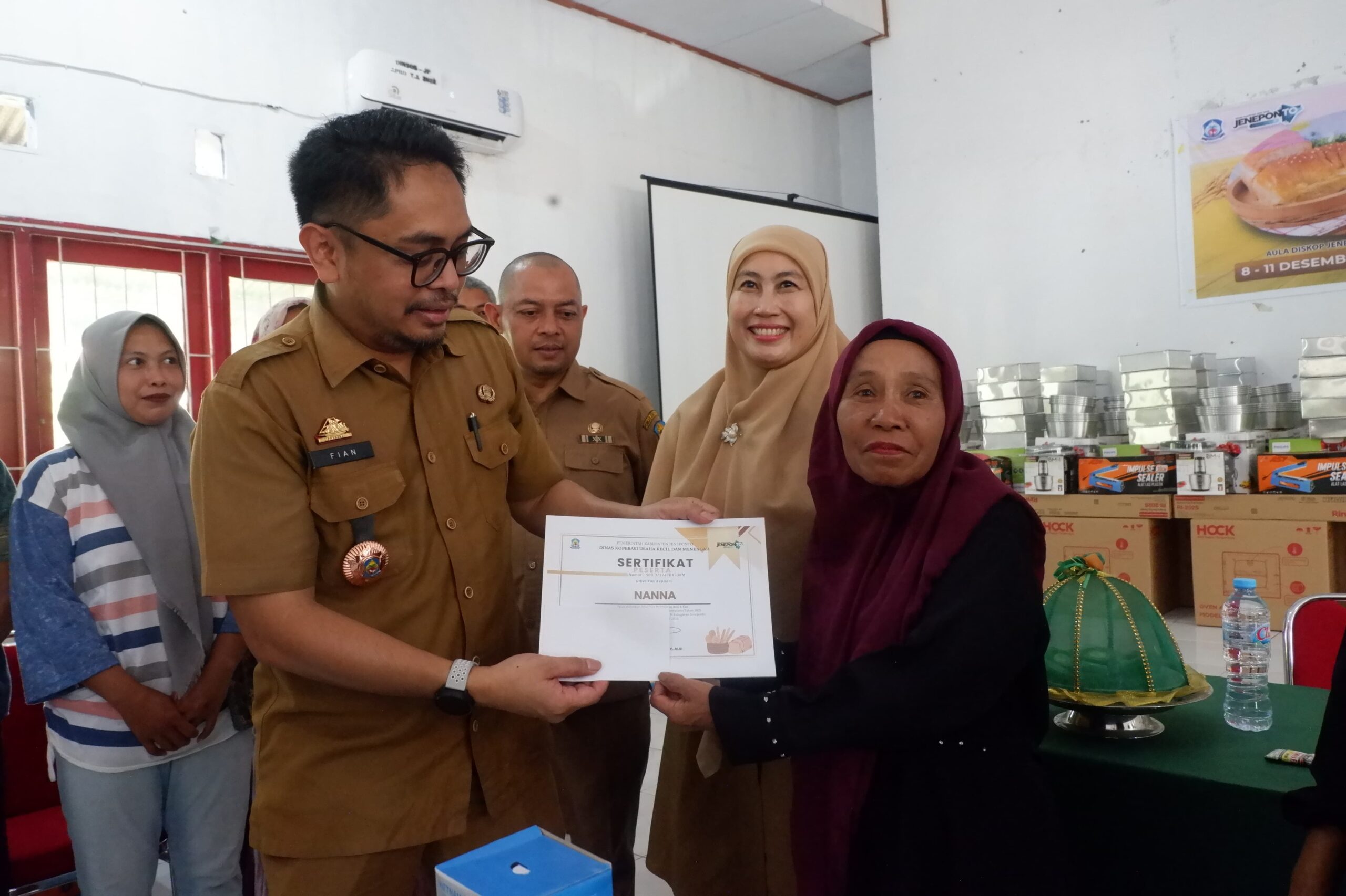JENEPONTO – pantau24jam.net. Pemerintah Kabupaten Jeneponto melalui Dinas Koperasi dan UKM menyerahkan bantuan pelatihan barista kopi beserta peralatan kopi dan kue kepada peserta Program P3KE.