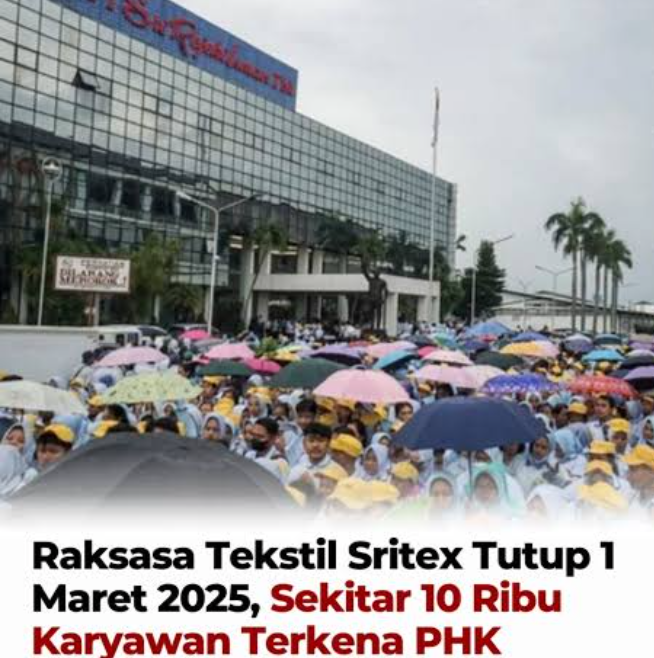 Sritex, salah satu perusahaan tekstil terbesar di Indonesia, mengumumkan PHK terhadap 10.665 karyawan pada 26 Februari 2025.