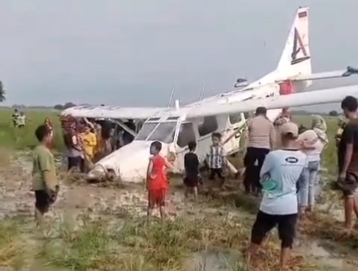 Pesawat jenis kecil ini membawa lima awak dari Tangerang tujuan Cirebon dan seluruh penumpangnya berhasil selamat tanpa mengalami luka serius.