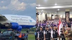 MAKASSAR — pantau24jam.net. Pesawat Garuda Indonesia dengan kode GIA 1105 yang mengangkut 450 jamaah haji asal Kabupaten Gowa, Sulawesi Selatan (Sulsel) melakukan pendaratan darurat usai mesin pada sayap sebelah kanan terbakar.