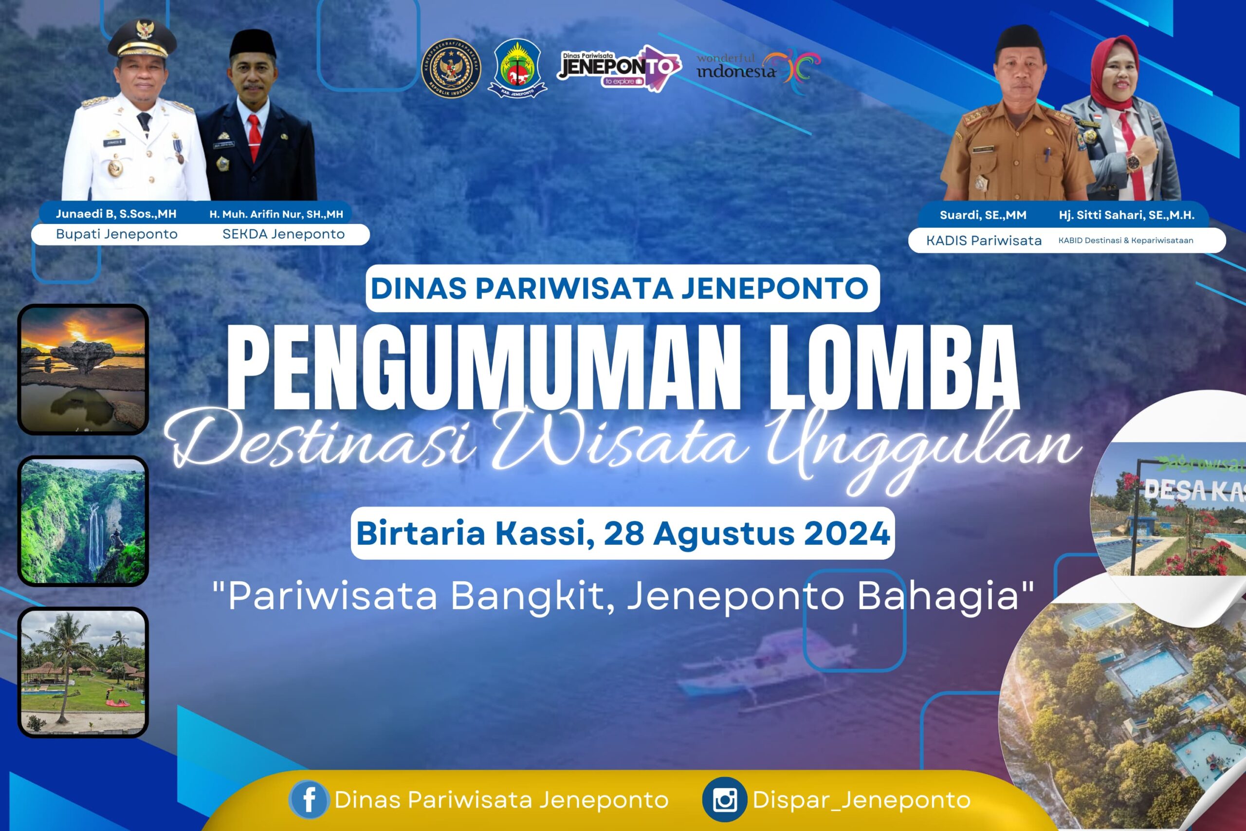Kegiatan dirangkaikan dengan pemghijauan penanaman bibit pohon sukun dan pemberian penghargaan piala bagi pemenang Lomba Destinasi Wisata yang diikuti oleh Kelompok Sadar Wisata (Pokdarwis) Destinasi Wisata di Kabupaten Jeneponto.
