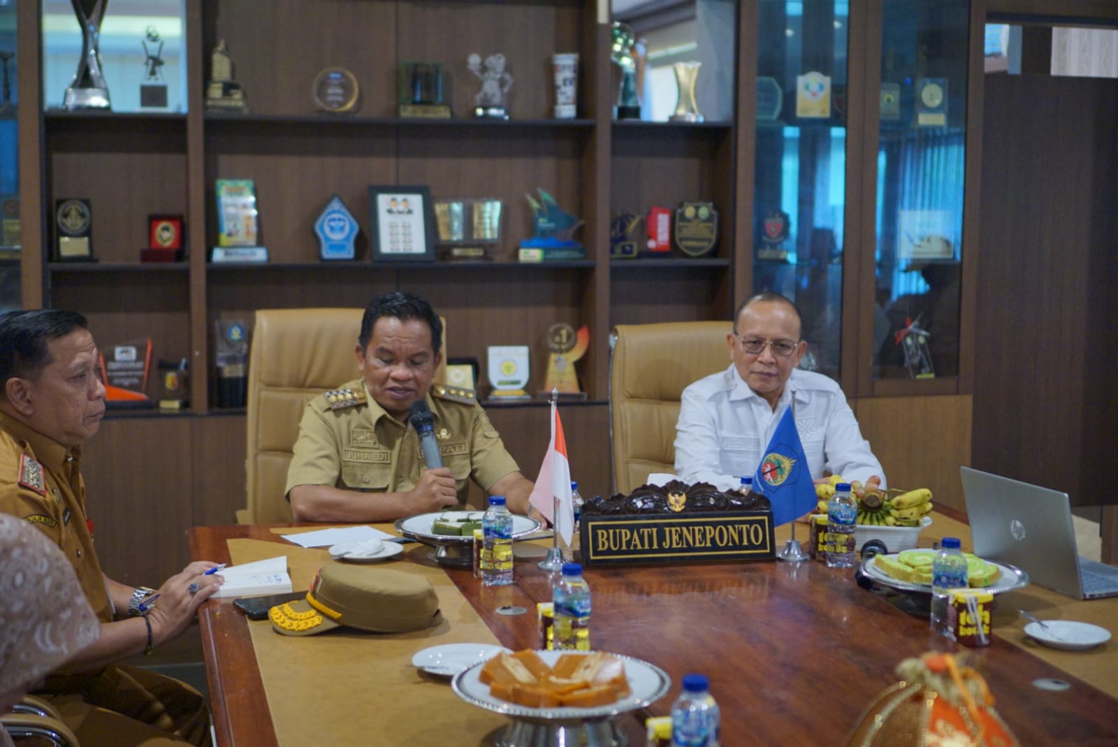JENEPONTO – pantau24jam.net. Pj Bupati Jeneponto, Junaedi Bakri, menerima kunjungan Kepala Balai Latihan Kerja (BLK) dan Balai Besar Pengembangan Vokasi dan Produktivitas (BBPVP) Sulawesi Selatan, Dr. La Ode Haji Polondu.