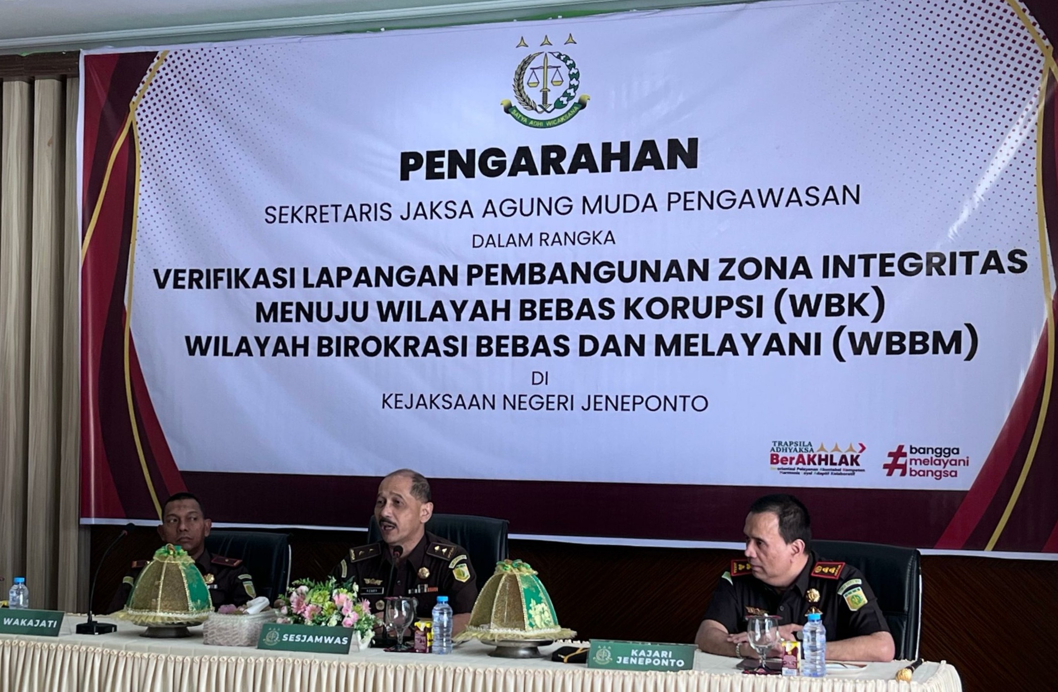 Tujuan kedatangan Plt. Sesjamwas kali ini bertujuan untuk memverifikasi lapangan terkait pengajuan Kejaksaan Negeri Jeneponto untuk menjadikan Wilayah Birokrasi Bersih dan Melayani (WBBM).