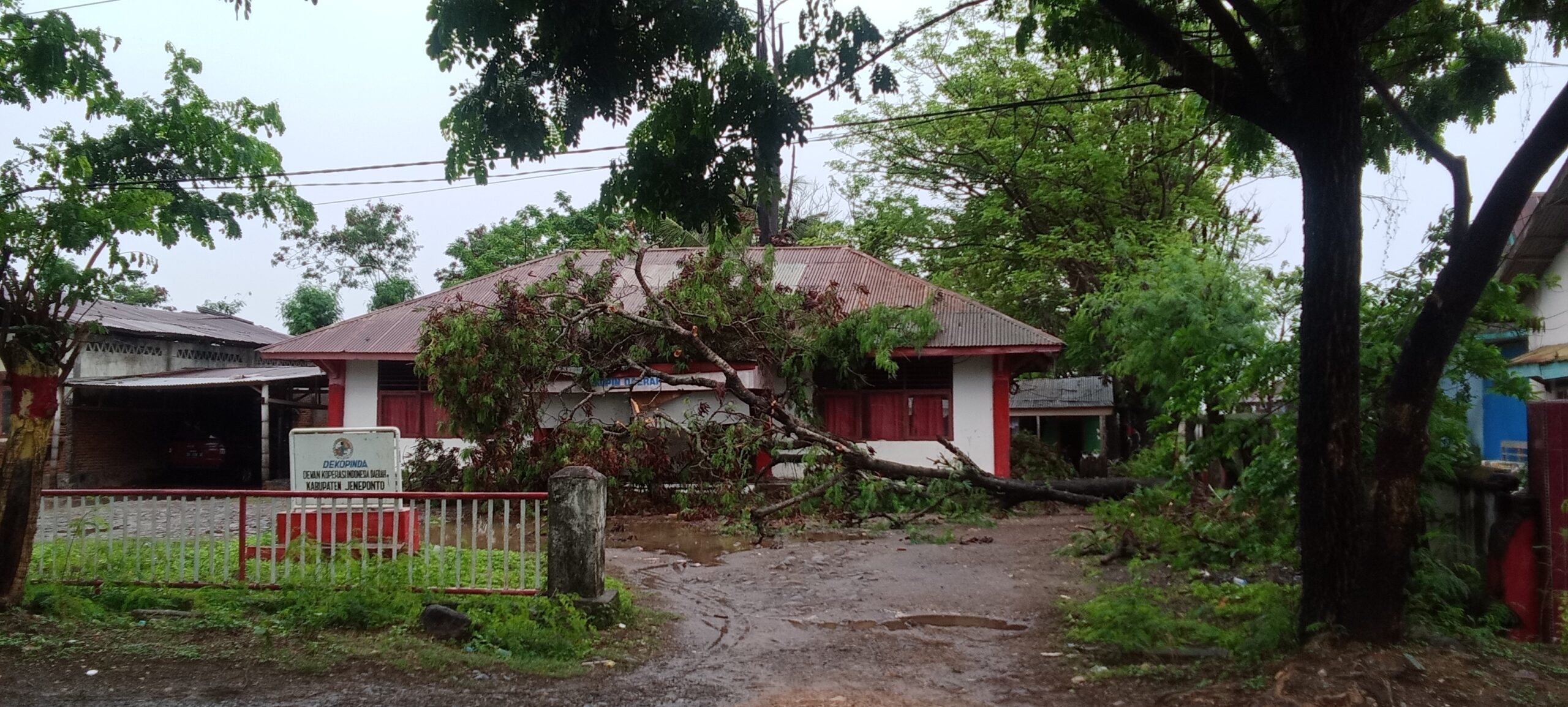“Tadi saya dengar suara pohon tumbang, kemudian ada juga mobil kijang super yang parkir pas di samping Kantor Dekopinda untungnya tidak kena mobil”, ujar Faisal Situru.