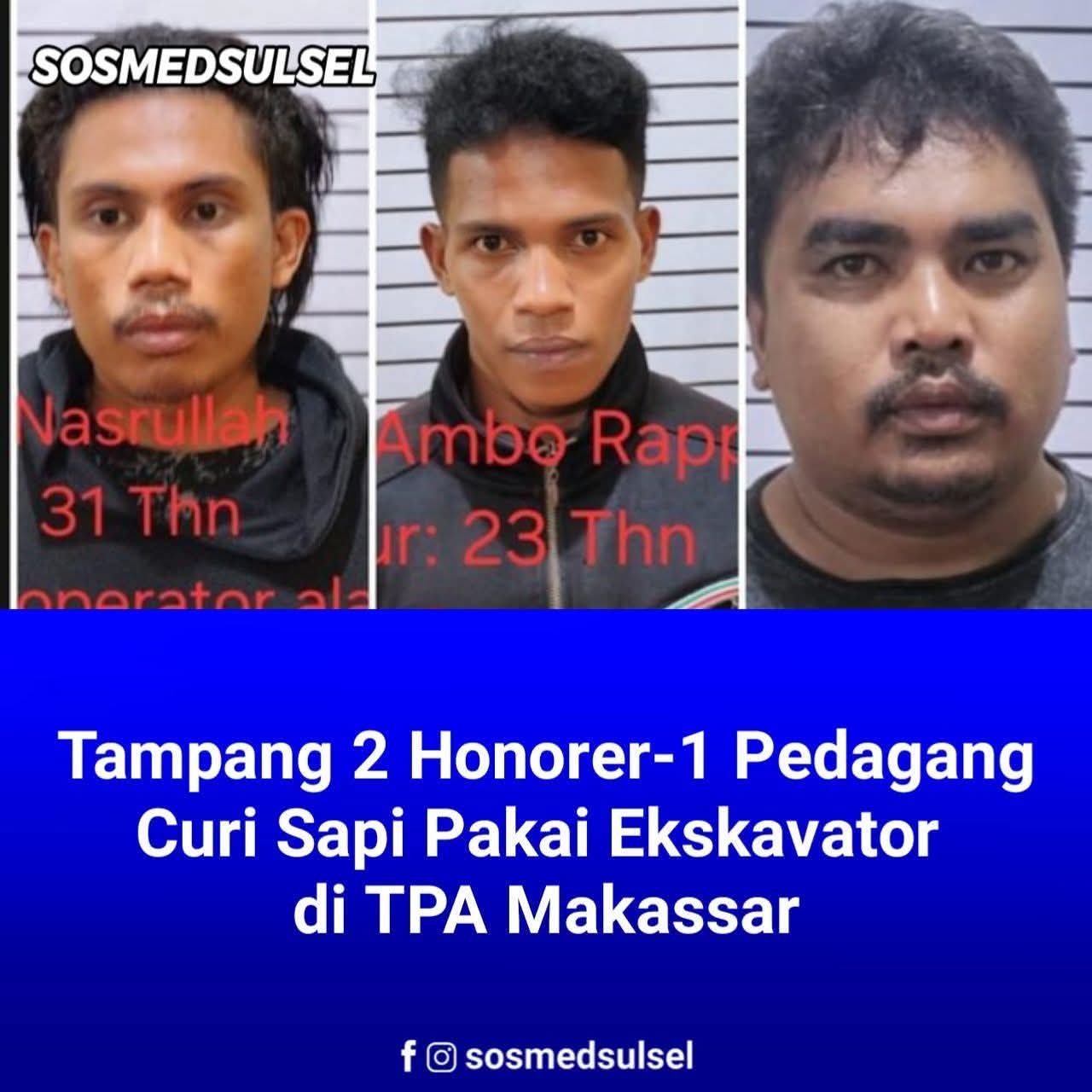 Pelaku bernama Ambo Reppe (23) sebagai honorer kantor Kecamatan Rappocini dan Hasrullah (31) bekerja sebagai honorer Dinas Lingkungan Hidup (DLH) Kota Makassar. Sedangkan untuk Saldi (31) merupakan otak kasus pencurian sapi ini merupakan pedagang.