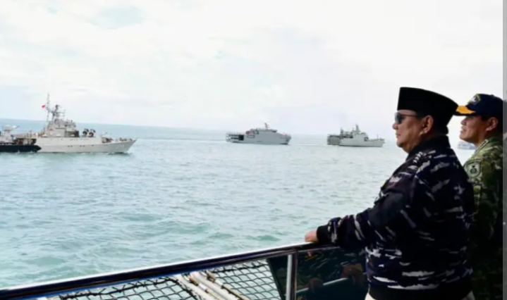 JAKARTA – pantau24jam.net. Presiden Prabowo Subianto menyaksikan demo laut dan sailing pass TNI AL Tahun 2025 dari kapal KRI dr. Radjiman Wedyodiningrat – 992, di perairan Teluk Jakarta. Kamis, 2/10/2025