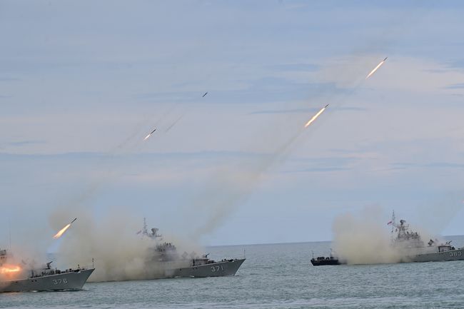 Dalam kesempatan itu juga aksi tembak meriam kapal perang yakni RBU – 6.000 anti kapal selam, serta tembakan Multi Launcher Rocket Systel (MLRS) RM – 7- Grad yang on board di KRI Teluk Amboina – 503.