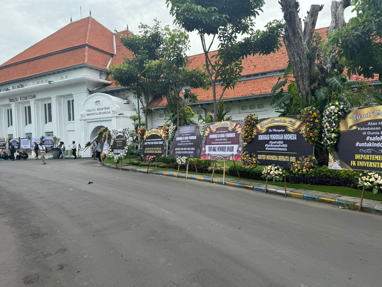 Sementara itu, jumpa media yang digelar di halaman Masjid Ulus Azmi Kampus C Unair ini penuh dengan drama. Para pimpinan Rektorat, Wali Amanat dan pimpinan serta jajaran dosen dan tendik FK Unair berkumpul dan melakukan salat Ashar berjamaah di masjid itu.