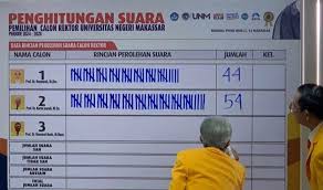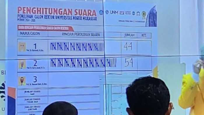 Prof Karta Jayadi meraih 54 suara pada Pemilihan Rektor (Pilrek) UNM di Menara Phinisi, Kampus UNM, Jl AP Pettarani, Kota Makassar. Jum’at, 3/5/2024.