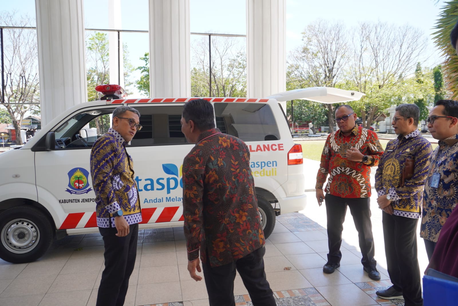 JENEPONTO – pantau24jam.net. PT TASPEN (Persero) melalui Kantor Cabang (KC) Makassar menyerahkan satu unit ambulans kepada Pemerintah Kabupaten Jeneponto.
