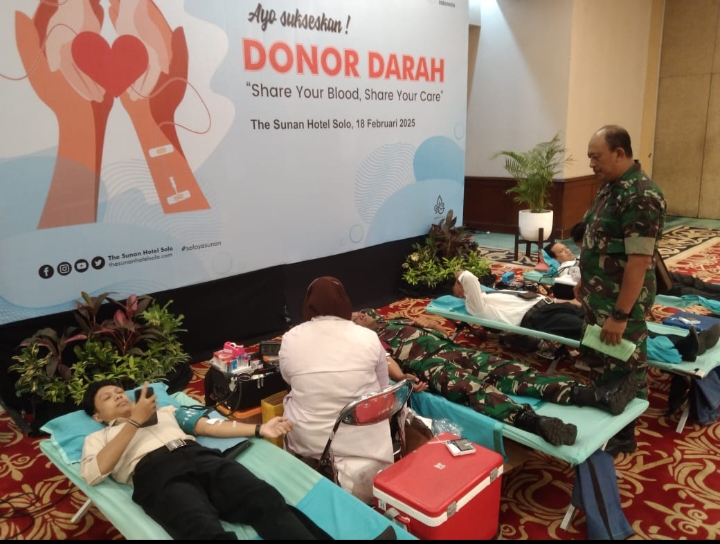 SURAKARTA – pantau24jam.net. Puluhan anggota TNI dari Kodim 035/Surakarta mengikuti kegiatan donor darah rutin, bertempat di Bolroom The Sunan Hotel Solo, Jl A Yani no 40 Kelurahan Kerten, Kecamatan Laweyan, Surakarta. Selasa, 18/2/2025.