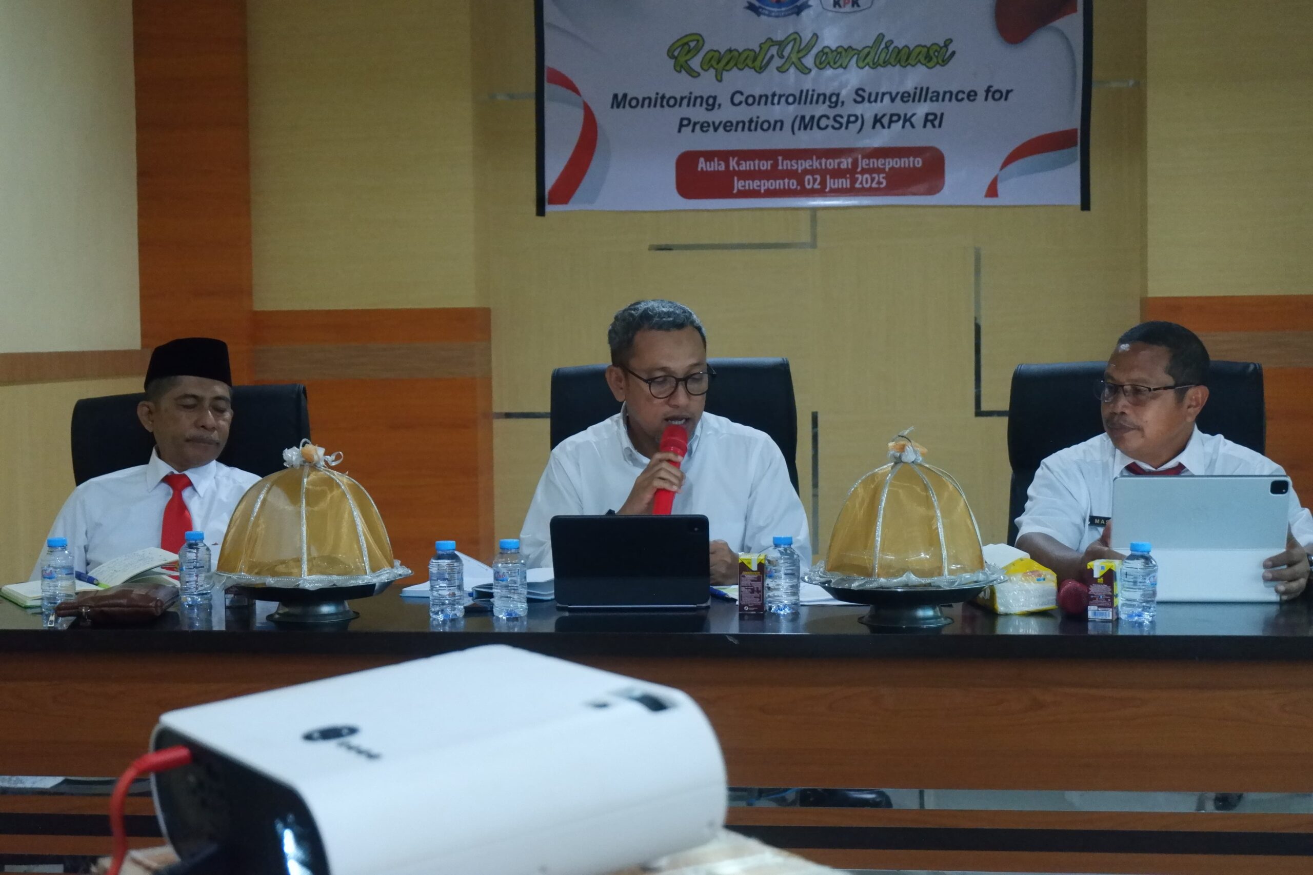 JENEPONTO – pantau24jam.net. Komisi Pemberantasan Korupsi Republik Indonesia (KPK RI) menggelar Rapat Koordinasi Monitoring, Controlling, Surveillance for Prevention (MCSP) di Aula Kantor Inspektorat Kabupaten Jeneponto. Senin, 2/6/2025.