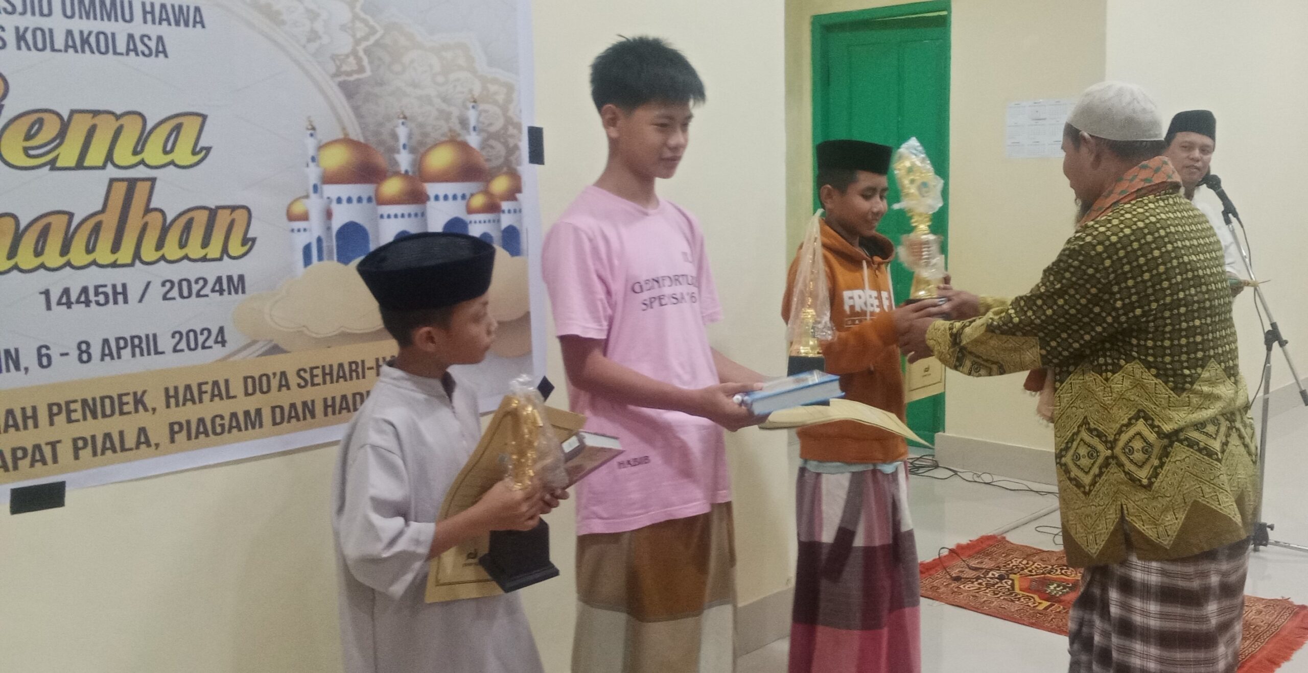 Penyerahan Piala dan Hadiah diserahkan oleh Imam Masjid Ummu Hawa, Ustadz Muh Alim Bahri, S.Pdi M.Ag. Kegiatan Gema Ramadhan ditutup oleh Ketua Pengurus Masjid Ummu Hawa Zainal Abidin, S.IP dan disaksikan oleh para jamaah Masjid Ummu Hawa.