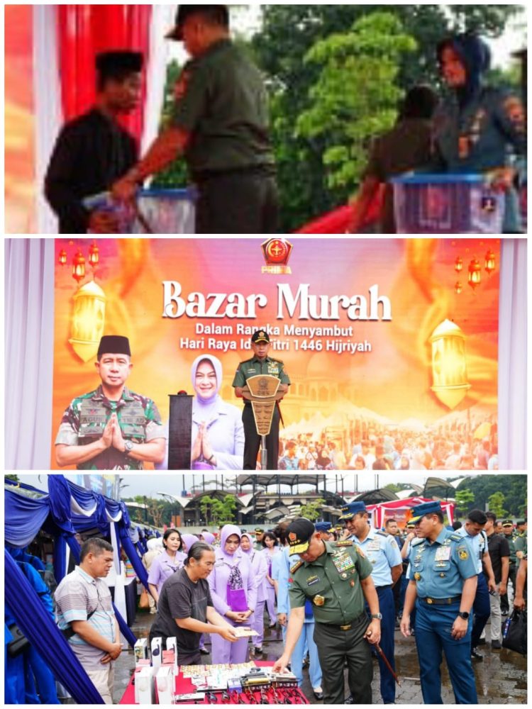 JAKARTA – pantau24jam.net. Menyambut Hari Raya Idulfitri 1446 H, Panglima TNI Jenderal TNI Agus Subiyanto secara resmi membuka Bazar Murah di Lapangan Upacara GOR Ahmad Yani, Mabes TNI, Cilangkap, Jakarta Timur. Selasa, 25/3/2025.
