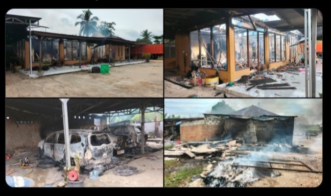 Tak hanya membakar rumah, warga yang marah juga membakar sepeda motor hingga mobil milik lurah.