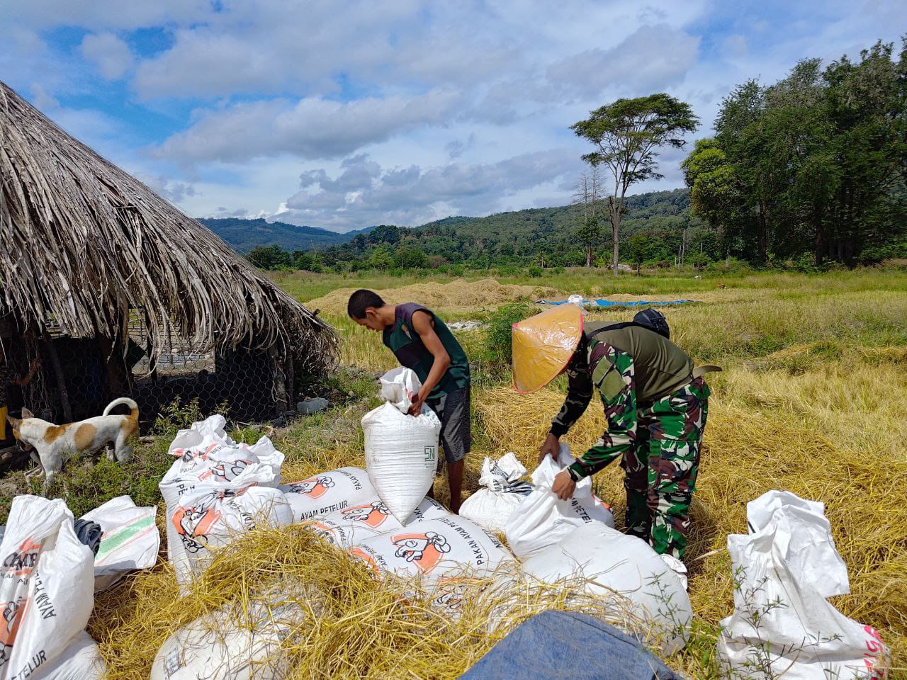 KUPANG – pantau24jam.net. Personel Satgas Pamtas RI–RDTL Sektor Barat Yonarhanud 15/DBY dari Pos Oepoli Sungai, yang dipimpin oleh Serda Praba, melaksanakan kegiatan bantu panen padi di sawah milik Nanis, warga Dusun Taloi, Desa Netemnanu, Kecamatan Amfoang Timur, Kabupaten Kupang.