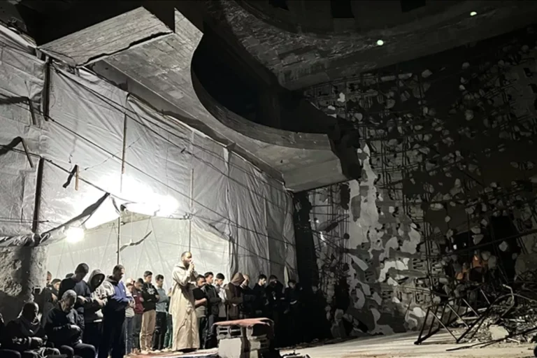 Menurut laporan Middle East Monitor, umat Muslim di Gaza menggelar ibadah malam itu di atas puing-puing masjid yang runtuh serta di ruang salat sementara yang dibangun dari tenda-tenda sederhana terbuat dari nilon dan kayu.