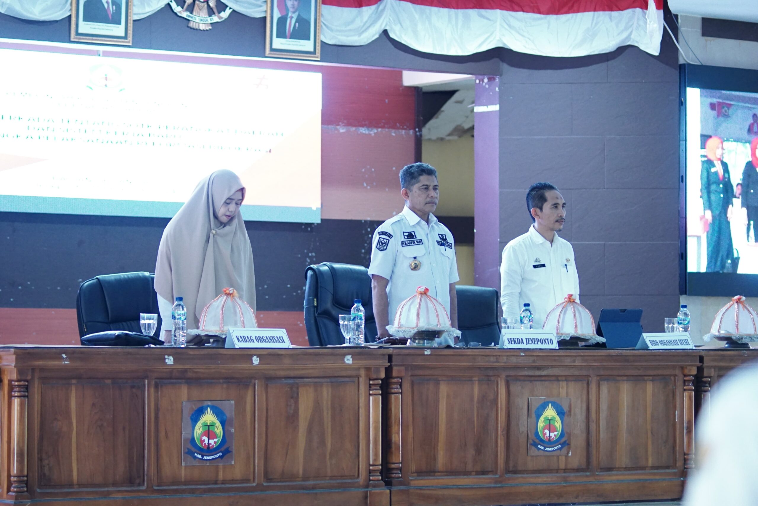 Acara yang berlangsung di aula kantor bupati tersebut dihadiri oleh Sekretaris Daerah (Sekda) Jeneponto, Kepala Bagian Umum, Kepala Bagian Organisasi, Asisten III, serta beberapa kepala dinas terkait. Rabu, 11/12/2024.