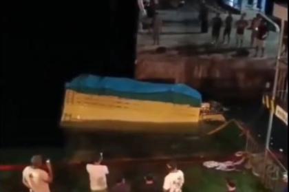 Muatan truk ditaksir mencapai 15-16 ton. Kondisi tersebut menyebabkan mobil yang dikendarai Hardianto, 29 tahun, warga Rilauale, Sulawesi Selatan hilang keseimbangan dan perlahan jatuh ke laut.