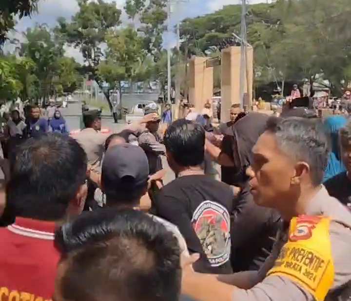 Awalnya, aksi unjuk rasa berjalan dengan lancar. Namun peserta demo ingin memaksa masuk ke Kantor KPU Sinjai.