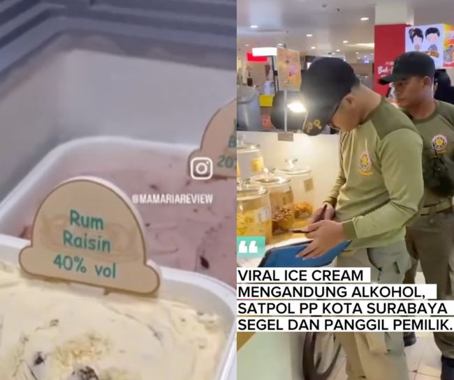 “Bahwa gerai tersebut tidak memiliki izin menjual alkohol. Maka, tim gabungan dari Satpol PP Kota Surabaya serta Dinas terkait pun bergerak untuk menindak gerai tersebut. Perda tersebut juga menjadi dasar untuk menyegel gerai es krim. Beberapa produk telah kami amankan untuk keperluan uji lab,” terang Eri.