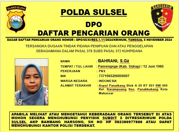 “Iya, mereka terlibat kasus penipuan dan penggelapan. Saat ini keduanya buron, dan surat daftar pencarian orang (DPO) telah dikeluarkan,” ujar AKP Bambang Harsono, Penyidik Subdit 2 Ditreskrimum Polda Sulsel. Kamis, 7/11/2024.