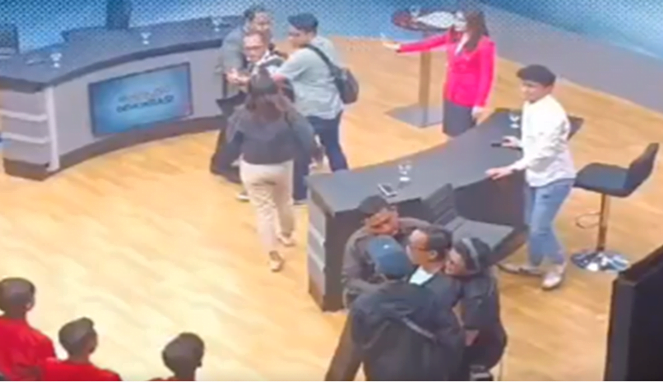 Dalam video yang beredar, keduanya sempat saling mendekat hingga terpaksa dipisahkan oleh sejumlah kru yang berada di studio.