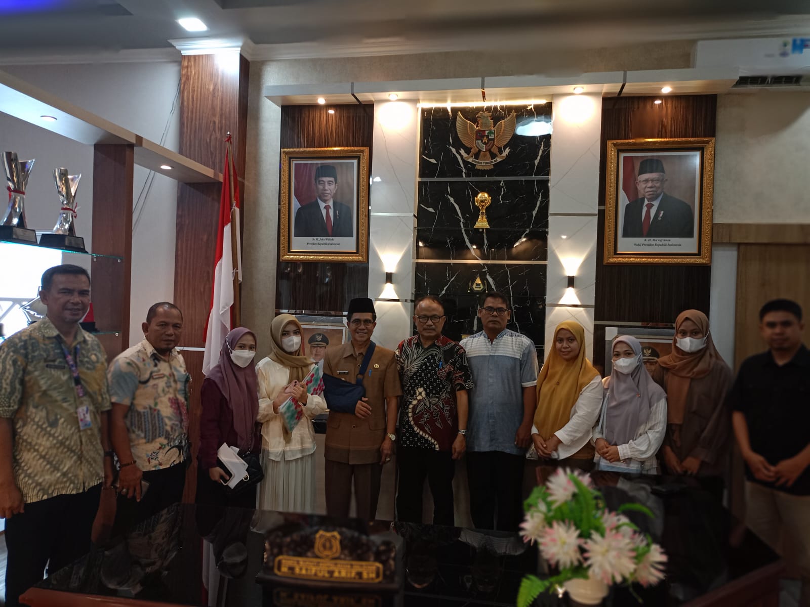 Penerimaan resmi yang dipandu Kabid Sumber Daya Kesehatan Dinkes Ashap Taufik, SKM, diwarnai perkenalan singkat ke empat Nakes, diakhiri foto bersama di ruang kerja wabup dan di teras kantor Bupati.