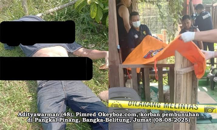 Seorang pimpinan salah satu media online di Pangkalpinang, Bangka Belitung yaitu Aditya Warman (47) ditemukan tewas.