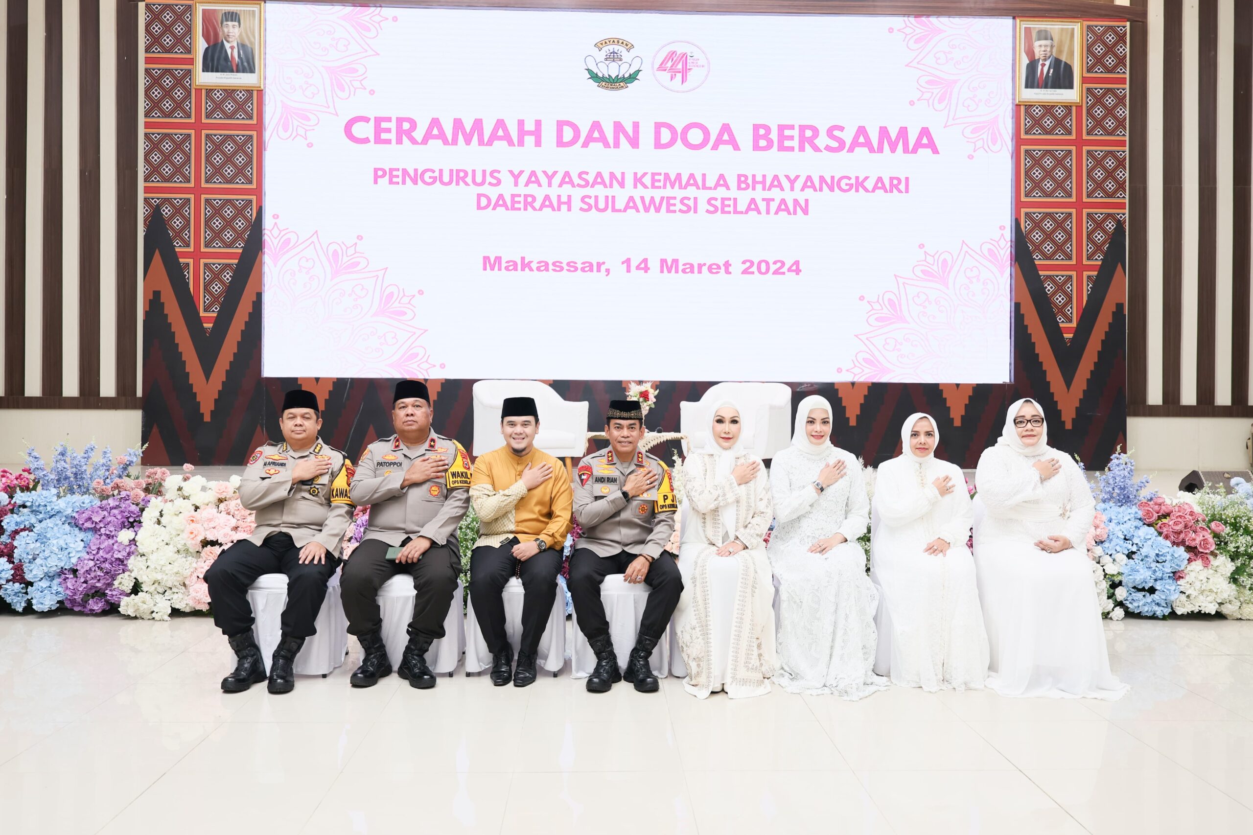 MAKASSAR – pantau24jam.net. Kapolda Sulawesi Selatan Irjen Pol Andi Rian R Djajadi, S.I.K., M.H bersama Ketua Pembina Yayasan Kemala Bhayangkari Daerah Sulsel Ny Dewwy Andi Rian menghadiri acara Ceramah dan Do’a di Aula Mappaodang Polda Sulsel. Kamis, 14/3/2024.
